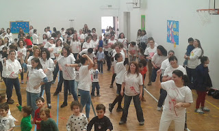 Mães e filhos comemoram o Dia da Mãe com uma aula de Zumba.